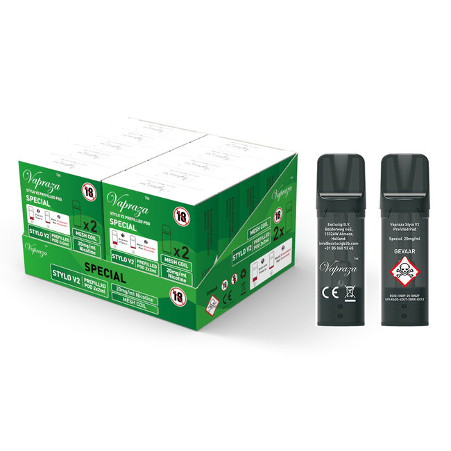 De eigenschappen van Vapraza Stylo V2 Pre-filled Pods - Special 2pcs